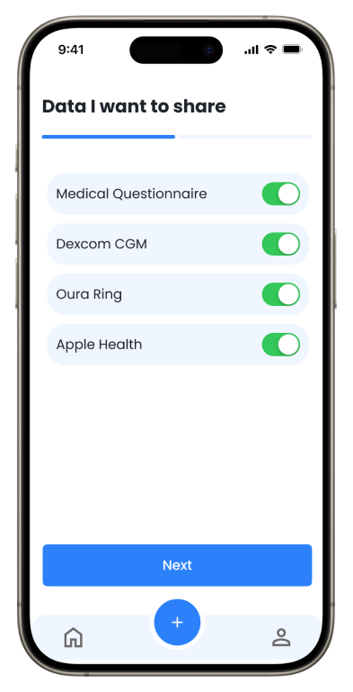 Currently, users can contribute manual entries of blood glucose levels, medical questionnaire, and quality of life questionnaire. We expect to have full integration with wearables soon.